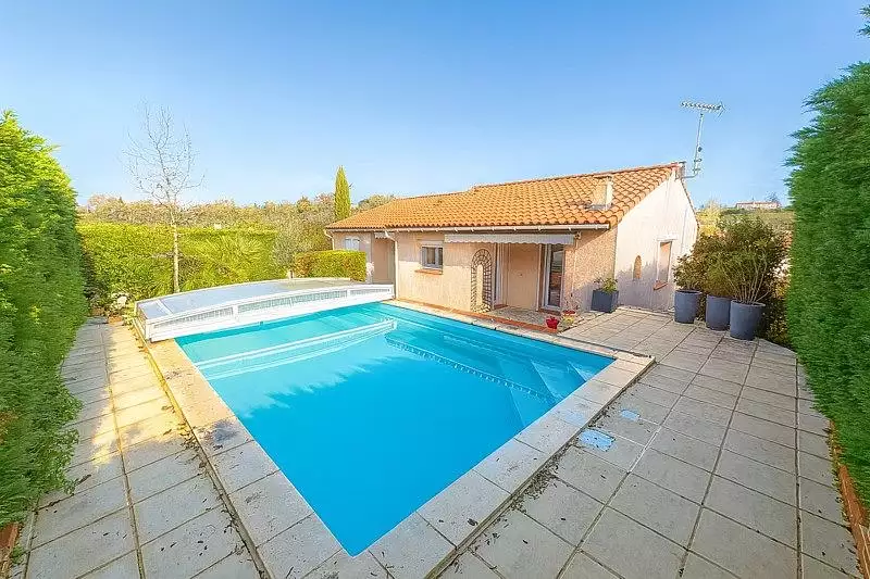 À Pechbonnieu, proche du centre, charmante villa de plain-pied : séjour lumineux avec cuisine ouverte, véranda chauffée, trois chambres et grand sous-sol avec garage de 60 m². Jardin clos intimiste avec piscine, idéal pour se détendre. Prête à vous accueillir ! Proposition d'aménagement virtuel non contractuelle en dernière photo.