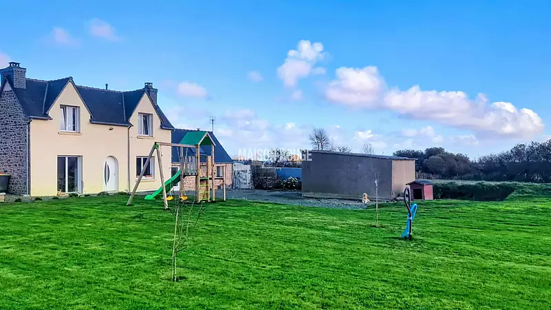 Découvrez sans tarder cette magnifique maison, entièrement rénovée avec des matériaux de qualité et de bon goût, située à 1,5 km du bourg de Penvénan et à seulement 4,5 km des plages. Cette habitation offre une vie de plain-pied très fonctionnelle. Le rez-de-chaussée s'ouvre sur une très belle pièce de vie lumineuse avec son poêle à bois, intégrant harmonieusement une cuisine moderne aménagée et équipée et un coin salon convivial. Vous bénéficierez également d'un espace buanderie pratique. Côté nuit, une chambre parentale déplafonnée vous attend, dotée de sa propre baignoire balnéo pour des moments de pure détente. Une deuxième chambre et une salle d'eau avec WC complètent ce niveau. A l'étage, l'espace est optimisé avec une grande mezzanine qui peut aisément être aménagée en chambre supplémentaire, bureau ou salle de jeux, ainsi qu'une troisième chambre indépendante. A l'extérieur, le terrain est agrémenté d'une terrasse, d'un garage, d'un abri de jardin et d'un puits. Prestations rares et modernes garanties. Un lieu idéal pour s'installer immédiatement sans travaux, parfait pour une résidence principale ou secondaire. Assainissement individuel, neuf et conforme, très bonne isolation thermique, faible consommation énergétique A découvrir rapidement avec l'Agence Maison Rouge Tréguier Prix FAI : 399 000 euros dont 3.64 % honoraires TTC à la charge de l'acquéreur. Valérie ALCALAY (EI) Agent Commercial - Numéro RSAC : 813 879 905 - SAINT BRIEUC.