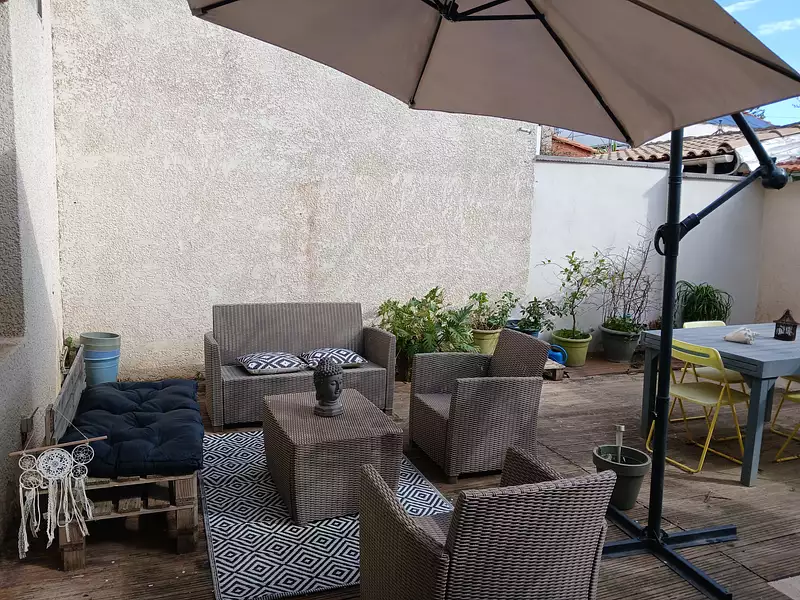 MAISON DE VILLE à PERPIGNAN, des années 30-40 et rénovée proche commodités et école, à 2 pas du centre ville , secteur calme composée de 3 chambres dont une en rez-de chaussée, grand séjour de 35 m2 avec parquet et cheminée, cuisine équipée - le tout donnant sur un jardin sans vis à vis avec petit studio indépendant de 18 m2, 2 wc, salle d'eau - petite mezzanine à l'étage, climatisation à l'étage et terrasse - possibilité d'un garage en plus. fenêtres en double vitrage - volets roulants référence 3356. pas de travaux - Les informations sur les risques auxquels ce bien est exposé sont disponibles sur le site Géorisques : www.georisques.gouv.fr.