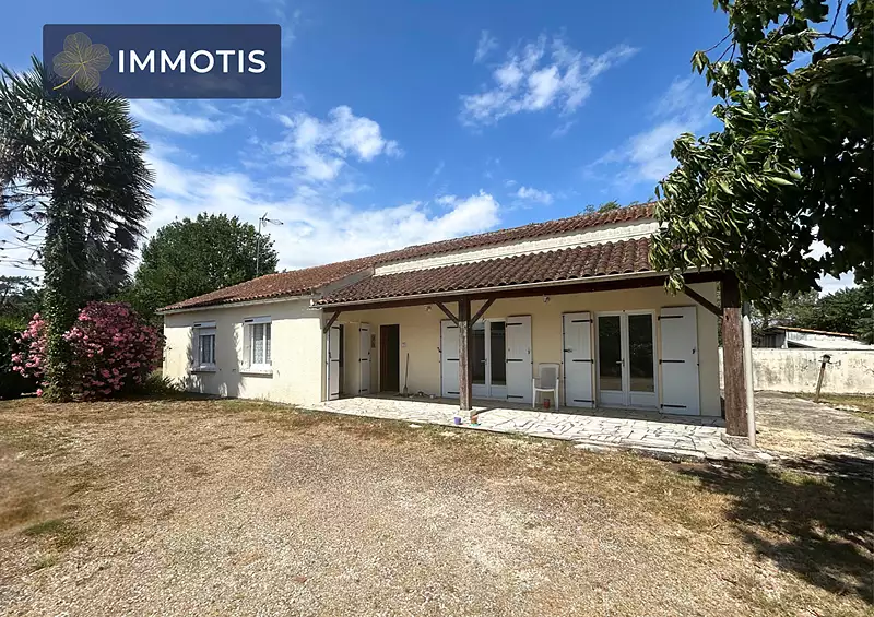 A vendre à Saint-Agnant, maison de plain-pied d'une surface habitable de 105 m², située sur un terrain arboré d'environ 1587 m². Elle se compose d'une entrée, d'un séjour lumineux, d'un dégagement, d'un débarras, d'une salle d'eau, d'un WC indépendant, de deux chambres ainsi que d'un bureau pouvant servir d'espace de travail ou de chambre d'appoint. A l'extérieur, vous profiterez d'une terrasse couverte sous préau, exposée sud-ouest, idéale pour les moments de détente en plein air. La propriété comprend également trois garages, un hangar et un grand jardin offrant de nombreuses possibilités d'aménagement. Des travaux de rafraîchissement sont à prévoir, permettant à chacun de personnaliser la maison selon ses goûts. Il s'agit d'un bien idéal pour une famille ou un premier achat. Environnement calme, à proximité des commodités et à seulement 20 minutes de Rochefort. A visiter sans tarder ! Contactez-nous au 05.46.83.99.85 ! (5.00 % honoraires TTC à la charge de l'acquéreur.)