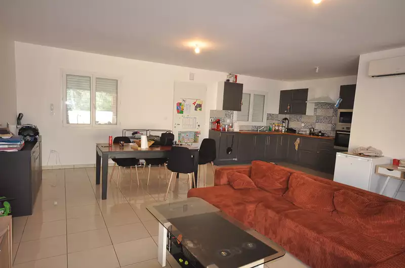 Pièce de vie lumineuse de 50 m2 avec cuisine américaine ouverte sur séjour