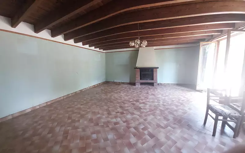 Entrée sur salon / séjour avec insert, cuisine, salle de bains, wc