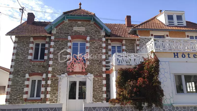 Idéalement située à 2 min à pied de la grande plage et du centre ville de Tharon-Plage, cette villa pleine de charme de 105m2 sur un terrain de 124m2 datant des années 1920 est composée de 2 appartements.