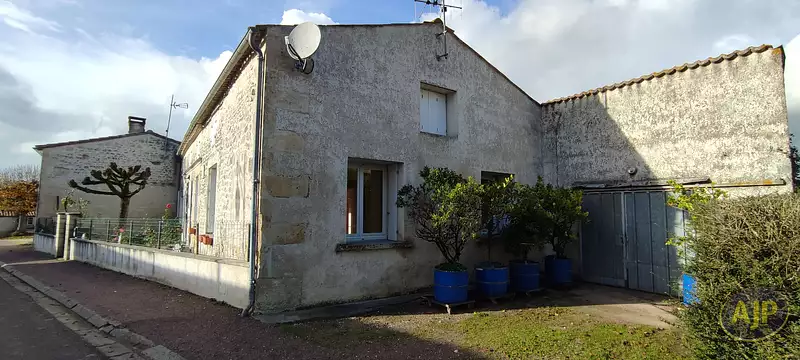 Sur la commune de Saint-Palais-de-Phiolin à seulement 10 minutes des commerces et 7 minutes des écoles, maison charentaise offrant : grande cuisine de 25 m², arrière cuisine, salon avec poêle à bois, salle à manger de 18 m², deux chambres. La maison offre un grenier aménageable de 68 m², un grand garage attenant ainsi que des chais offrant un maximum de potentiel d'agrandissement. En extérieur, vous trouverez un jardin d'environ 500 m² au calme. (6.65 % honoraires TTC à la charge de l'acquéreur.)