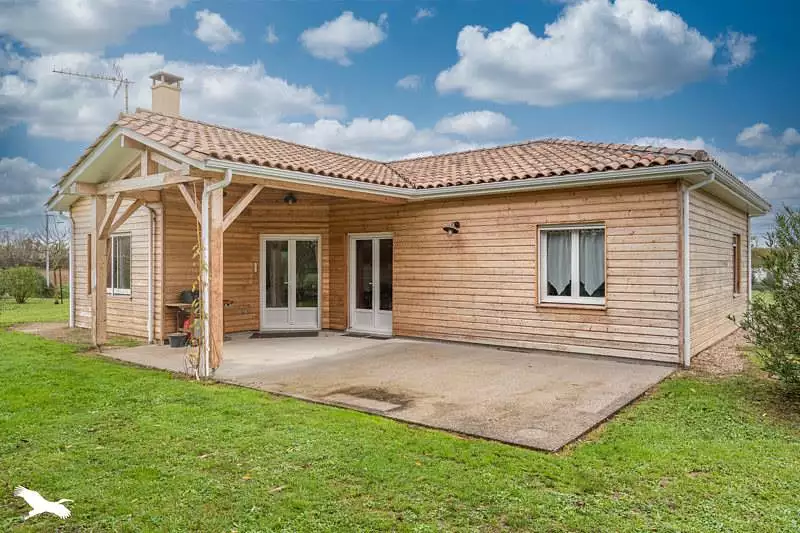 En campagne, à 3 km des commerces, maison contemporaine ossature bois de plain pied comprenant cuisine ouverte sur séjour équipé d'une clim réversible et d'un poële à bois, cellier, trois chambres, salle d'eau. Garage attenant et terrasse. Panneaux solaires. Abri de jardin/atelier/bûcher. Jardin autour d'environ 2000m²