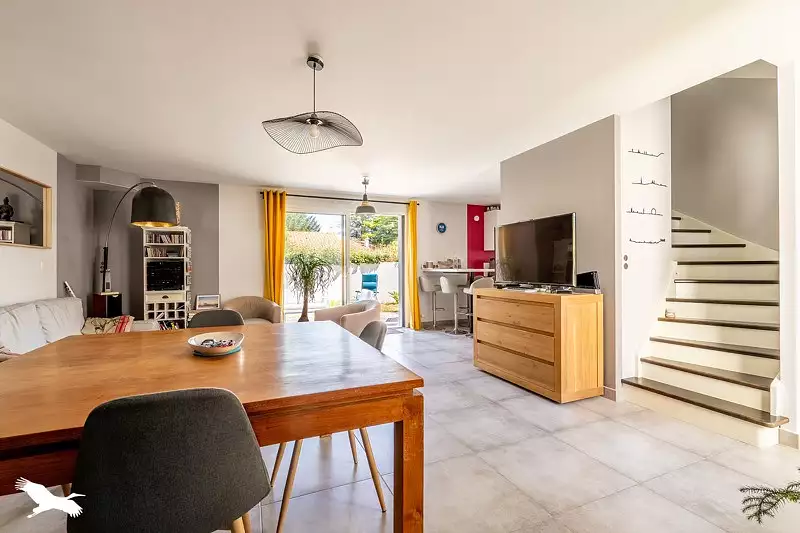 Maison contemporaine sous garantie décennale dans le centre de Saint Philbert de G/Lieu. Vous apprécierez sa cuisine ouverte sur le séjour avec accès à la terrasse, sa suite parentale au rez-de-chaussée, ses 2 chambres à l'étage avec leur salle d'eau, cellier, garage et jardin. A pied des commerces, écoles, collège et futur lycée.
