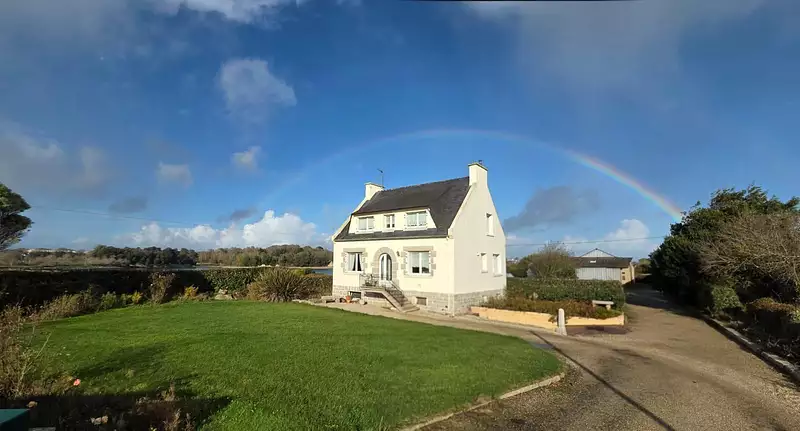 Une maison néo bretonne anne?e 1972 non mitoyenne a? usage d'habitation de 105 m2 habitables dont 180 m2 de surface totale au sol, 5 pie?ces, 4 chambres + un bureau et cave.