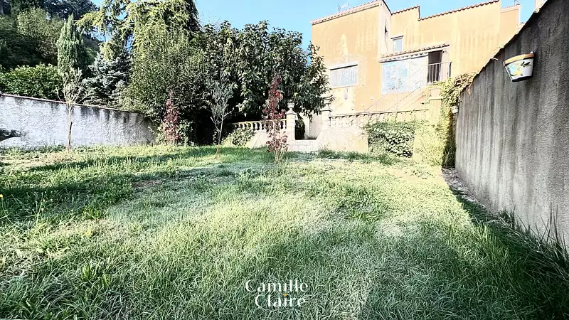 Mandat unique ! Secteur calme et recherché, venez découvrir cette opportunité. Maison Type 5 mitoyenne sur un côté au calme dans la commune de Saint-Savournin. Superficie habitable environ 125 m2 sur deux niveaux, avec grande terrasse et deux vérandas. Le bien dispose d'un beau potentiel avec une vue dégagée et un grand sous-sol + cave. L'habitation se compose sur la partie Rez-de-jardin d'une entrée sur séjour et salon climatisé, une cuisine fermée avec cellier, 1 WC, sur le même palier nous retrouvons les vérandas ainsi que l'accès à la terrasse et jardin. A l'étage : 3 chambres, une salle de bains et 1 WC séparé. Le bien comprend un jardin agréable d'environ 300 m2 clos. Proche des bus et commerces de proximité à pied. MNo286 NM-RCS 818042244 du pays d'Aix-en-Provence. Taxe foncière :1126€ - Charges annuelles de lotissement 536€/an. Honoraires charge acquèreur 3%. Classe énérgie D estimation des coûts annuels d'énérgie du logement entre 1660€ et 2310€ par an. Plus d'informations sur demande, contacter nicolas : 06.26.30.21.50.