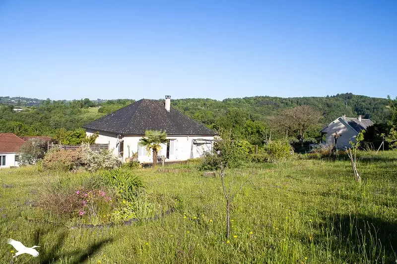 A 8 min d'Objat, 25 min de Brive. Maison de 2008 semi-enterrée avec vue dominante. Elle vous offre une cuisine ouverte sur salon/séjour, trois chambres, salle de bains, deux wc séparés, garage, cellier, chaffage électrique et poêle à bois Godin. Le tout sur 3725m² de terrain constructible pouvant être diviser. Proposition d'aménagement virtuel non contractuelle en dernière photo.