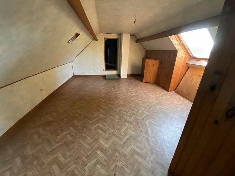 À l’étage, vous trouverez deux chambres et un grenier aménageable.
