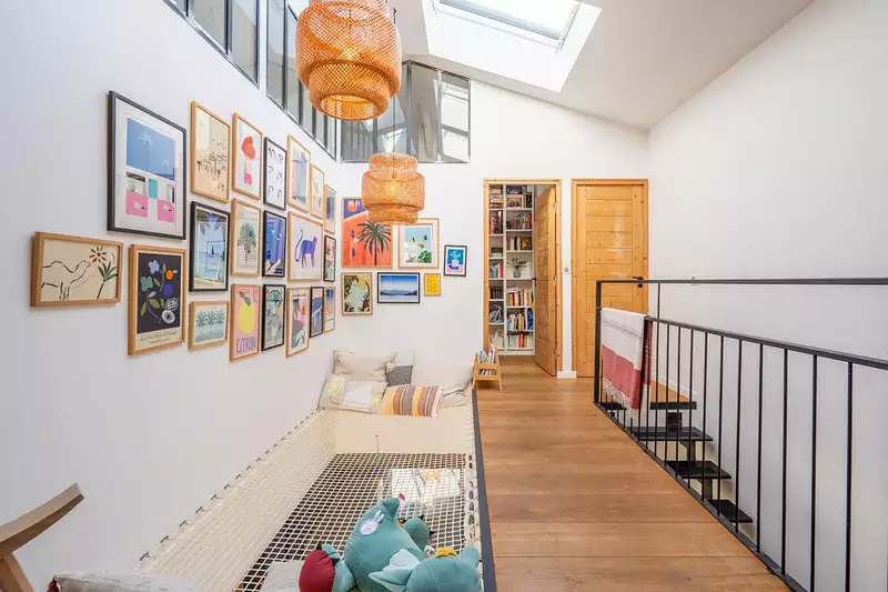 À l'étage, l'ambiance se fait plus intimiste, avec un esprit chalet qui apporte chaleur et douceur. Vous y trouverez trois belles chambres, deux salles de bain ainsi qu'un espace cosy, agrémenté d'un filet suspendu, pensé comme un lieu de détente original et accueillant.