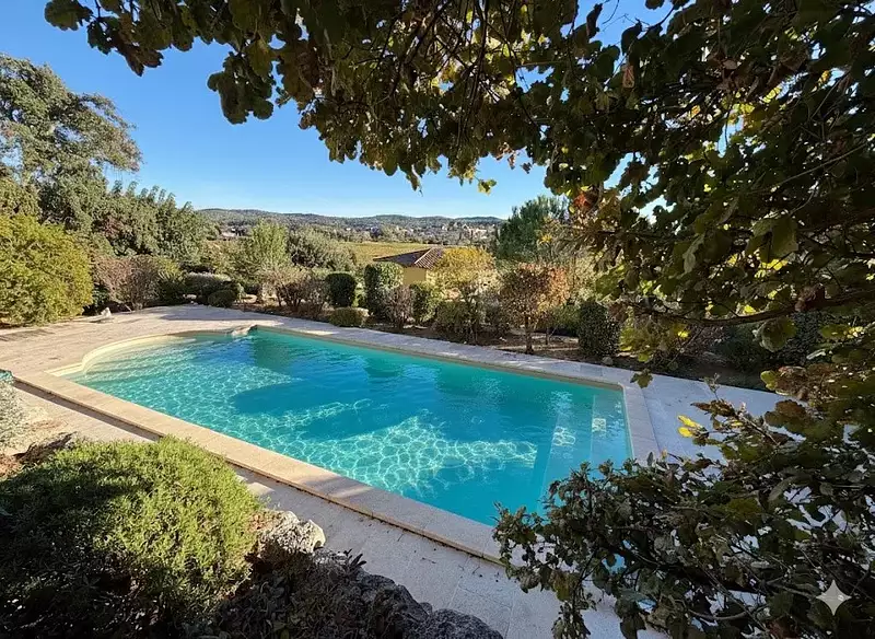 MAISON - CARCES - 10 MINUTES DE COTIGNAC, au cœur de la Provence Verte, à proximité d’un adorable village de caractère et de l’ensemble des commodités, école primaire, collège… agréable maison provençale contemporaine implantée sur un terrain clos et paysagé de 763 m² planté d’essences méditerranéennes. Une jolie piscine (8 x 4 m) agrémente le jardin qui est un véritable havre de paix. En position dominante, elle offre un panorama exceptionnel et unique sur l’ensemble de la campagne environnante et le village. Exposée idéalement au sud, elle est lumineuse et agréable à vivre. Entrée, confortable salon / salle à manger s’ouvrant sur une large terrasse au Sud dominant le jardin et la piscine, cuisine ouverte entièrement équipée, salle de bains, wc. A l’étage : 3 chambres au sud, bureau, salle d’eau, wc. Abri jardin attenant (17,5 m²). Abri voiture. Au calme, sans vis-à-vis, en parfaite harmonie avec son environnement, cette maison moderne de qualité, en excellent état général vous ravira en résidence principale ou secondaire. Excellent rapport locatif possible. Les informations sur les risques auxquels ce bien est exposé sont disponibles sur le site Géorisques : georisques.gouv.fr