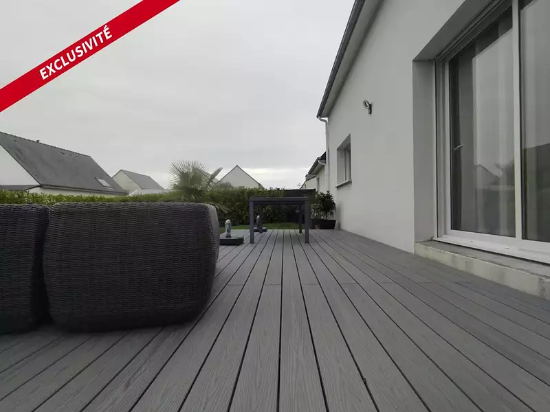 À l'intérieur, la maison se compose de 5 pièces dont 4 chambres, 2 salles de bain, et 2 toilettes. L'espace habitable bien agencé comprend des menuiseries modernes en double vitrage, une belle luminosité grâce aux expositions Sud, Sud-Est et Sud-Ouest, et une toiture en ardoise. Avec des vues agréables sur le jardin, cette maison récente de 2021 offre un cadre confortable à quelques pas de la mer, idéal pour une vie paisible en bord de mer.