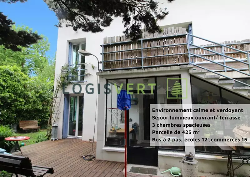 L'agence LOGISVERT vous propose une maison à vendre à Palaiseau. SECTEUR RECHERCHÉ. Située dans un environnement CALME et VERDOYANT, maison INDIVIDUELLE d'environ 107 m² offrant : entrée, SÉJOUR DOUBLE LUMINEUX avec accès TERRASSE, cuisine semi-ouverte, 3 chambres, salle d'eau, salle de bains et WC indépendant. Un GARAGE et une chaufferie-buanderie complètent ce bien. Le tout sur une parcelle de 425 m². PROCHE COMMODITÉS: écoles à 12', bus à 2 pas, commerces à 15' et proche du Plateau de Saclay. DPE D!
