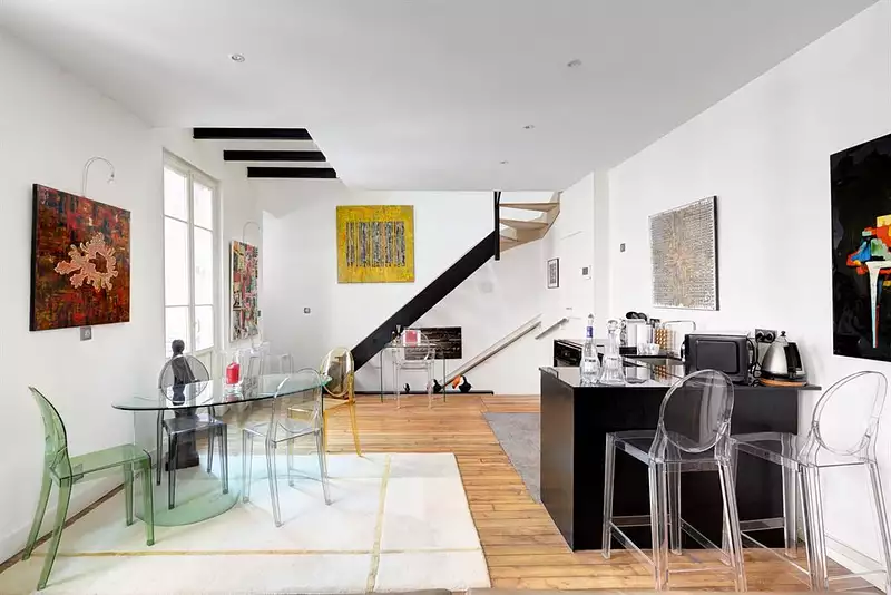 A l'étage, un grand séjour avec cuisine US ouvrant sur une terrasse de 8 m2, à l'étage supérieur une grande chambre.