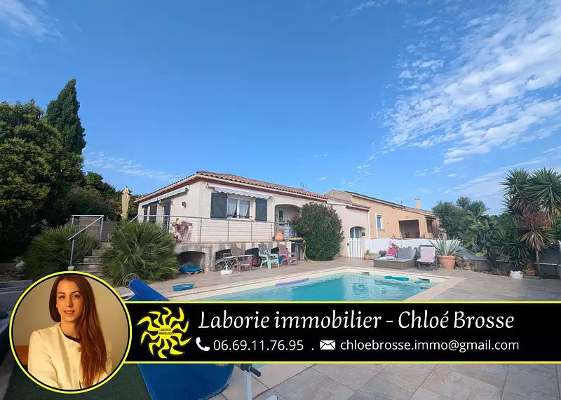 Votre agent immobilier Chloé Brosse de l'agence LABORIE IMMOBILIER, joignable au : O6.69.II.76.95, vous présente aujourd'hui cette très belle villa de type 4 + bureau d'environ 110 m2 de plain-pied, sur 540 m2 de terrain avec piscine et terrasse.