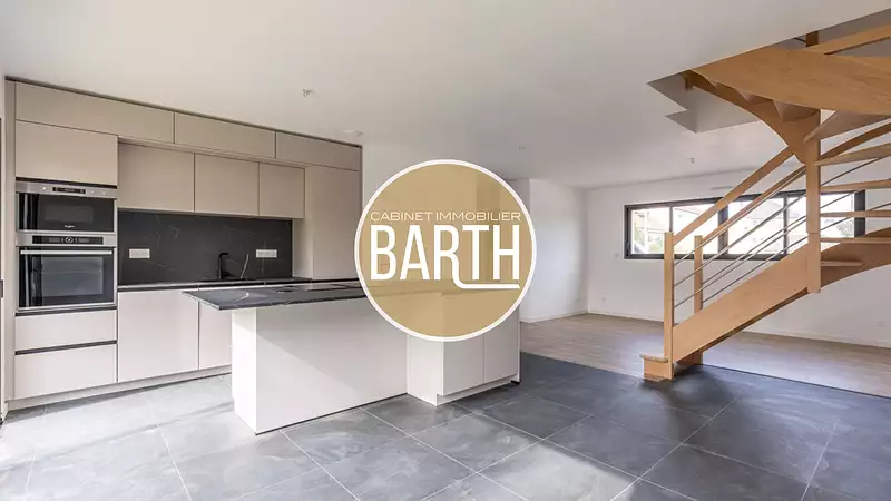 A VENDRE NOUVEAUTÉ CHEZ CABINET BARTH IMMOBILIER - MAISON T6 - NEUVE - JARDIN - GARAGE - RENNES Retrouvez-nous sur Instagram : barth_immobilier Le Cabinet BARTH Immobilier vous propose à la vente cette magnifique maison neuve idéalement située dans le quartier Cimetière de l'Est à Rennes. Cette maison, située au bout d'une impasse calme et sans vis-à-vis, comprend au rez-de-chaussée une entrée, une belle et lumineuse pièce de vie d'environ 40 m² avec cuisine aménagée et équipée ouverte sur un double séjour. Vous trouverez également une buanderie ainsi qu'un WC séparé. A l'étage se trouve un dégagement qui dessert trois chambres spacieuses et lumineuses, un bureau ainsi qu'une salle de bains et un WC séparé. La maison bénéficie également d'un garage attenant ainsi que d'un jardin exposé plein sud, le tout sur un beau terrain d'environ 233 m². N'ATTENDEZ PLUS POUR VENIR VISITER CE BIEN D'EXCEPTION ! Référence : 1896AG (4.15 % honoraires TTC à la charge de l'acquéreur.)