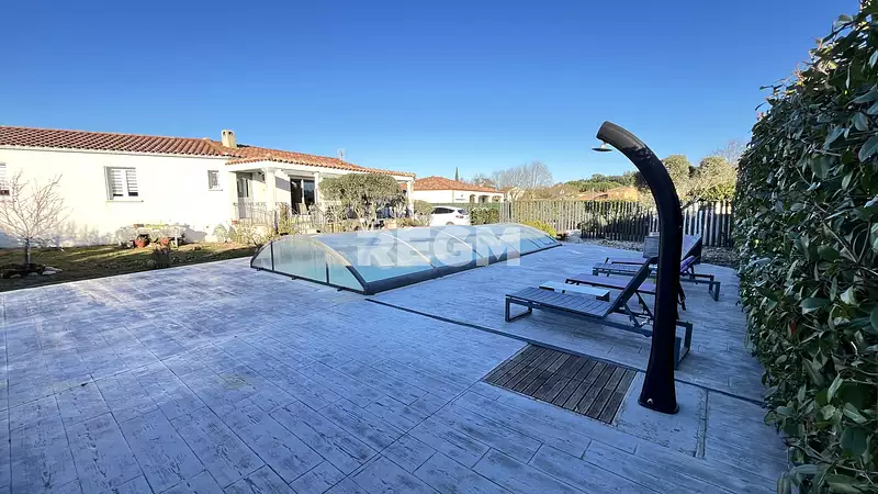Villa individuelle de plain-pied d'une surface habitable de 106 m2 sur une parcelle arborée de 1200 m2 avec piscine de 4 X 9, située dans un lotissement paisible composé de 7 lots.