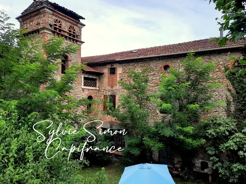 La maison principale d'une surface de 106 m² située au 1er étage est construite en pierre traditionnelle, elle dispose de 4 chambres, 1 salon et une cuisine ouvrant sur une superbe terrasse de 40 m², 1 garage de 50 m ² et des dépendances d'environ 170 m2.