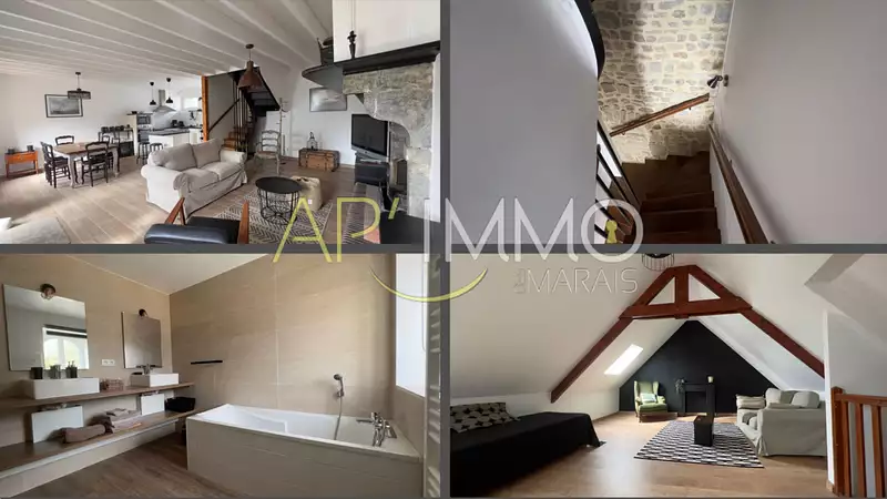 Au coeur d'un village historique, venez découvrir ce splendide bien situé dans le bourg de Sainte-Marie-du-Mont. Vous serez autant séduit par l'extérieur que l'intérieur de cette charmante maison en pierre entièrement rénovée avec goût et matériaux de qualité. Actuellement exploitée en tant que gîte, cette maison pourrait aussi bien vous plaire en tant que résidence principale ou secondaire, de plus la décoration soignée est comprise dans le prix de vente ce qui en fait un bien directement exploitable. Vous trouverez au rez-de-chaussée une grande et lumineuse pièce de vie de 42 m², le 1er étage propose deux chambres parquetées, une salle d'eau + WC ainsi qu'une salle de bains + WC et nous finirons au 2ème étage avec une somptueuse chambre sous les combles de près de 19 m² + un dressing. A l'extérieur une buanderie avec WC et une agréable terrasse vient compléter ce bien, le tout pour une contenance de 60ca. Les informations sur les risques auxquels ce bien est exposé sont disponibles sur le site Géorisques : www.georisques.gouv.fr (5.40 % honoraires TTC à la charge de l'acquéreur.)