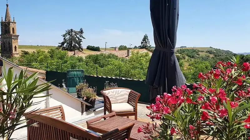 Proche Villasavary. Au coeur d'un pittoresque village niché dans les collines du Lauragais, maison ancienne en excellent état agrémentée d'une vaste terrasse sans vis a vis et offrant une vue panoramique sur le village et la campagne environnante.