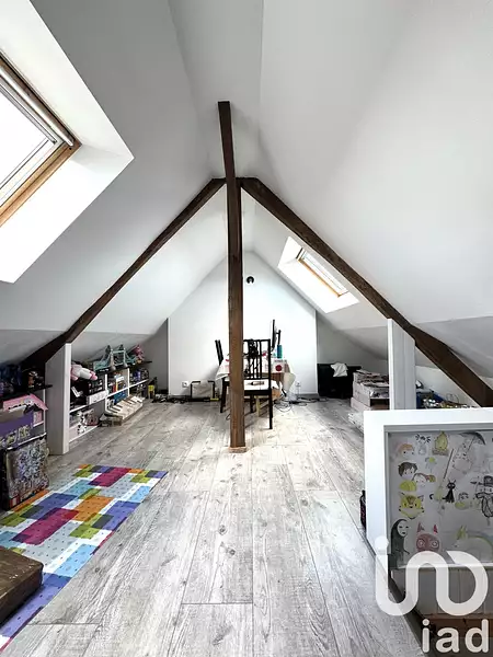A l'étage, trois chambres lumineuses de 10 à 12 m² puis des combles aménagés (22 m² au sol/9 m² habitables) pour une 4ème chambre, une salle de jeux ou un bureau.