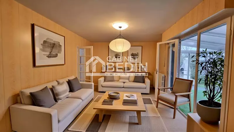 MAISON A ETAGE AVEC JARDIN ET GARAGES. Au calme, proche du centre de Bruges, des commerces et des écoles cette maison à étage vous offrira un bel espace de vie agrémenté d'une véranda ouverte sur le jardin arrière. A l'étage 3 chambres et un bureau avec balcon, salle de bain et un WC. Un grand jardin d'accueil et 2 garages permettent de garer plusieurs voitures. DPE C (pompe à chaleur, double vitrage) apporte un vrai confort de vie à cette maison qui n'attend plus que vos talents de décorateur. L'espace salle à manger pourrait être transformé en chambre avec salle d'eau, créant ainsi une maison familiale avec 4 chambres et un bureau. A visiter sans tarder !. Les informations sur les risques auxquels ce bien est exposé sont disponibles sur le site Géorisques : www. georisques. gouv. fr. Montant estimé des dépenses annuelles d’énergie pour un usage standard : entre 1330 et 1850 Euros/an (année de référence 2023)