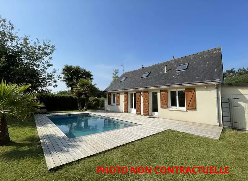 Maison individuelle d'une surface habitable de 107 m² développant une surface plancher de 136 m², implantée sur un terrain piscinable et clôturé de 569 m².