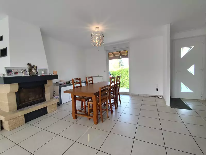 KM IMMOBILIER vous propose à jaunay-Marigny une maison sur sous-sol semi-enterré d'environ 108m2, comprenant à l'étage une entrée, une pièce de vie lumineuse avec cheminée insert donnant sur la terrasse avec baie alu à galandage, une cuisine aménagée, 3 chambres dont 2 avec placard, une salle d'eau, un WC indépendant.