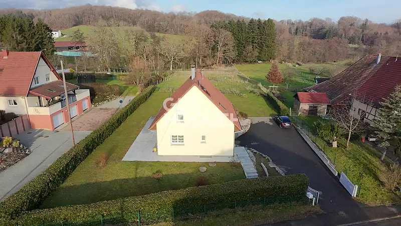 A vendre Maison récente avec terrain constructible à Le Haut Soultzbach A seulement 10 minutes de l'axe autoroutier Mulhouse-Belfort, venez découvrir cette belle maison familiale construite en 2010 située dans un environnement paisible à Le Haut Soultzbach une commune prisée du Haut-Rhin réputée pour sa qualité de vie, son cadre naturel verdoyant et sa proximité avec les grandes agglomérations. Cette maison de 107 m² habitables est implantée sur un vaste terrain de 39 ares dont 7,90 ares sont encore constructibles : un véritable atout si vous envisagez un agrandissement, une dépendance ou un projet locatif. Le rez-de-chaussée s'ouvre sur une entrée avec placard intégré menant à une cuisine haut de gamme Schmidt entièrement équipée, ouverte sur un salon-séjour lumineux. Cet espace de vie convivial donne accès à une grande terrasse de 80 m² parfaitement orientée sans aucun vis-à-vis avec une vue dégagée sur le jardin arboré. A l'étage, trois chambres confortables vous attendent ainsi qu'une salle de bains complète comprenant baignoire, douche et toilettes. Le sous-sol vous offre un double garage, une buanderie fonctionnelle ainsi qu'une cave, idéal pour vos besoins de rangement. Côté confort, la maison est dotée d'un chauffage électrique au sol complété par un poêle à bois, de fenêtres double vitrage avec volets roulants PVC et d'un terrain entièrement clôturé, aménagé récemment. Le Haut Soultzbach est une commune dynamique née de la fusion de Mortzwiller et Soppe-le-Haut, appréciée pour son environnement calme, ses sentiers de randonnée, sa proximité avec la nature et ses accès rapides vers Burnhaupt, Cernay, Mulhouse ou Belfort. Une visite virtuelle est disponible sur notre site internet pour vous projeter dès maintenant dans votre futur chez-vous. Contactez sans attendre l'agence Guy Hoquet Burnhaupt, située dans la galerie de l'HYPER U, pour organiser une visite ou obtenir plus d'informations.