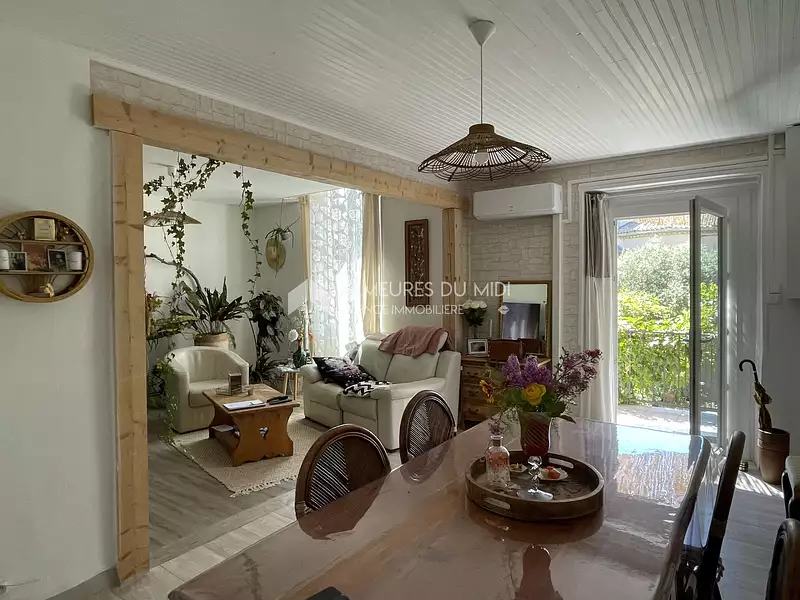Au coeur de Lédignan, jolie maison de village comprenant sur deux niveaux un logement de 3 pièces principales à l'étage avec une possibilité d'extension, un logement de deux pièces principales en rez-de-chaussée, un grand garage. Maison en très bon état général, offrant un joli jardin sans vis à vis direct, en bout d'impasse privée.