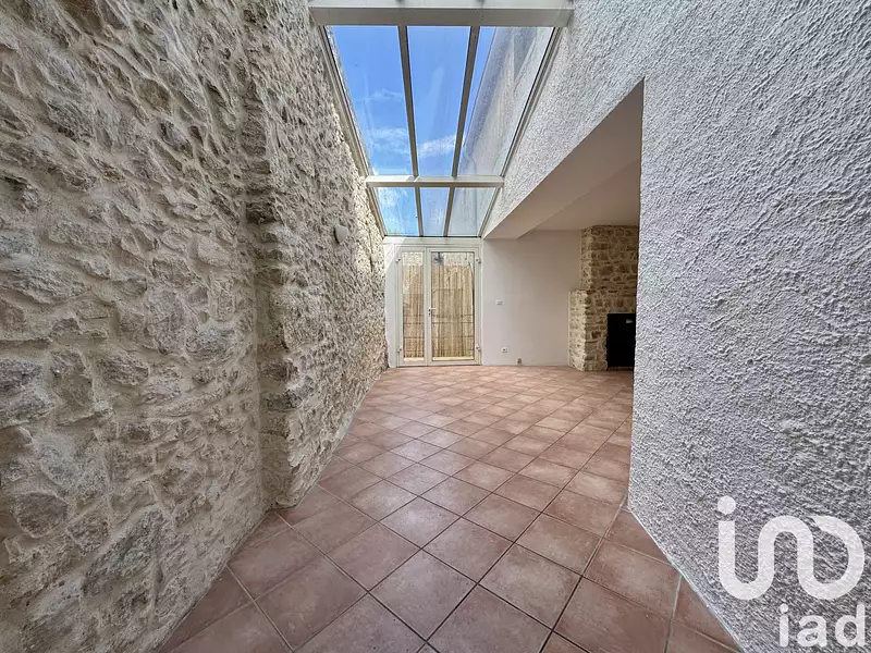 iad France - Catherine Rouvière-François vous propose: Sur la place calme d'un des 'plus beaux villages de France' du Gard, cette sympathique et lumineuse maison de village de 107m2, avec terrasse privative de 25m2 et cour en rez-de-chaussée.