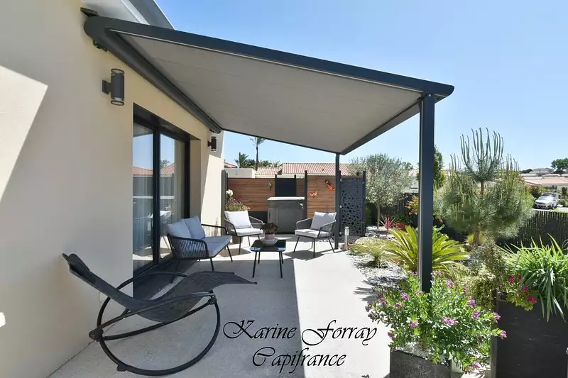 - Terrasse avant exposée sud, dotée d'une pergola avec son store électrique.