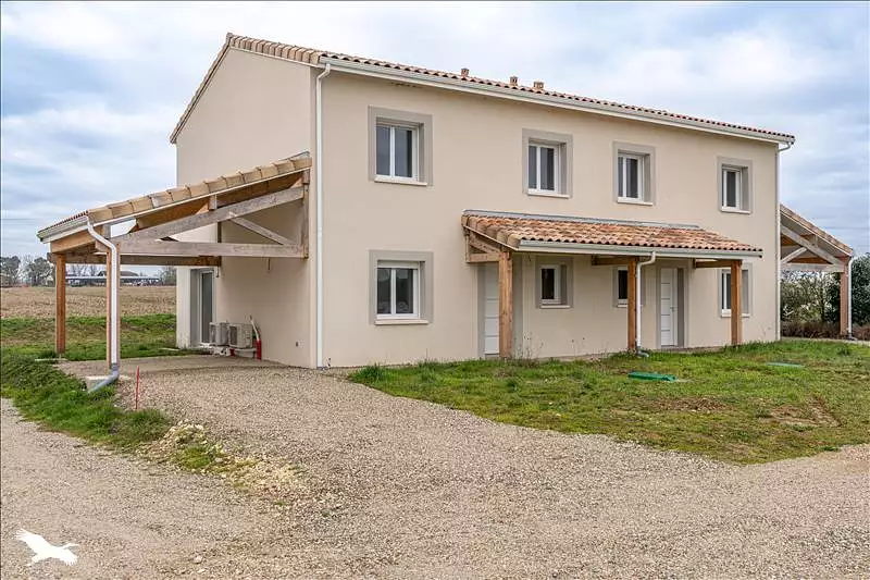 A moins de dix minutes de Marmande, à cinq minutes de l'axe autoroutier. Maison neuve, mitoyenne sur un côté, offrant : cuisine ouverte sur salon/séjour, quatre chambres dont une en rez-de-chausée, deux salles d'eau, carport, jardin d'environ 320m². Normes RT 2012, chauffe-eau thermodynamique, volets roulants électriques.