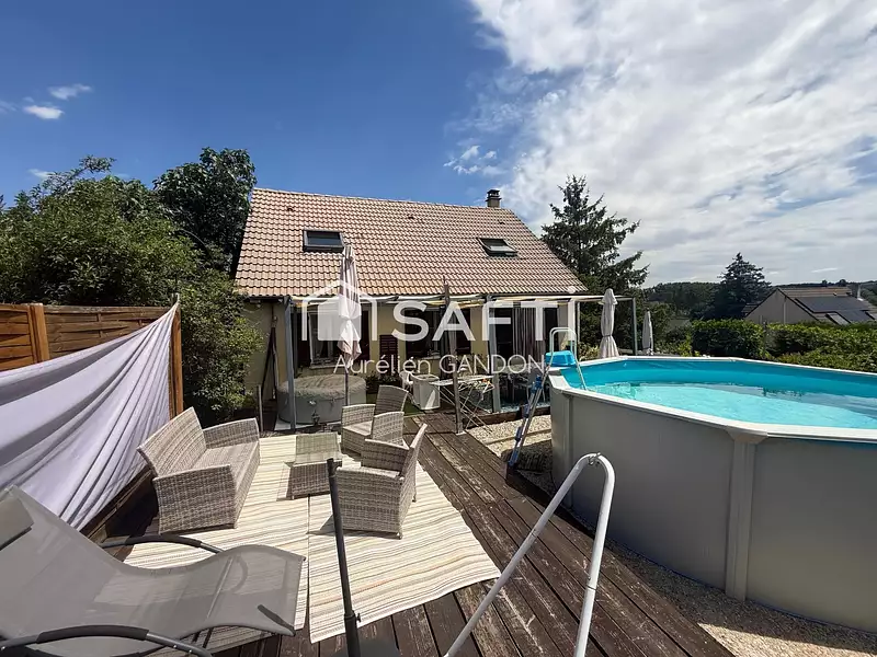 À l'intérieur, cette maison spacieuse de 108 m² se compose de 6 pièces, dont 2 chambres au rez-de-chausée, une cuisine aménagée et équipée, un salon/séjour avec insert a bois, une salle de bain et wc.