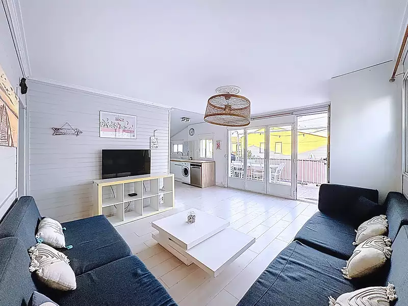 Contact: Audrey Fernandez 06.43.29.30.54 Agent Commercial RSAC 985307842 Situé sur le secteur très recherché de la mythique plage des Chalets de Gruissan, ce chalet élevé sur 2 niveaux offre un cadre de vie rare, à deux pas des plages et des commerces, tout en restant parfaitement au calme. Description du chalet 108 m², 8 pièces, 5 chambres, une terrasse de 20 m², un garage de 18 m² et un atelier Élevé sur deux niveaux, ce chalet développe une surface totale de 108 m², dont : 35 m² au rez-de-chaussée 73 m² à l'étage Il bénéficie d'une distribution optimale, de beaux volumes et d'une belle luminosité. A l'étage : un très bel espace de vie avec: Un grand séjour / salon donnant accès à la terrasse Une cuisine ouverte, entièrement refaite, aménagée et équipée Une salle à manger lumineuse sous verrière Une terrasse aménagée de 20 m² avec barbecue et cuisine d'été, parfaite pour les repas en extérieur Une charmante salle d'eau atypique avec douche Deux chambres avec placards Un coin nuit/bureau Un WC indépendant Au rez-de-chaussée : autonomie et polyvalence Idéal pour accueillir famille, amis ou pour de la location saisonnière : Un séjour avec cuisine aménagée et équipée Deux chambres supplémentaires Une salle d'eau avec douche et WC intégré Une buanderie Un garage de 18 m² parfait pour stocker le matériel de voile, vélos, équipements de plage etc. Un atelier pour les bricoleurs ou espace de stockage supplémentaire Prestations et confort Climatisation réversible DPE : Classe C / GES : Classe B Taxe foncière : 750 euros Taxe d'amodiation : 120 euros Emplacement idéal A seulement quelques pas des plages, des commerces saisonniers sans en subir les nuisances sonores et des pistes cyclables, activités nautiques, restaurants Un environnement exceptionnel, calme et agréable, parfait pour profiter de l'esprit unique de la plage des Chalets. Ce bien est idéal pour une résidence principale, secondaire en bord de mer ou un investissement locatif (forte demande sur le secteur) Un chalet rare sur le marché. Contactez-moi pour échanger sur votre projet et organiser une visite! Contact: Audrey Fernandez 06.43.29.30.54 Agent Commercial RSAC 985307842 Audrey FERNANDEZ (EI) Agent Commercial - Numéro RSAC : - .