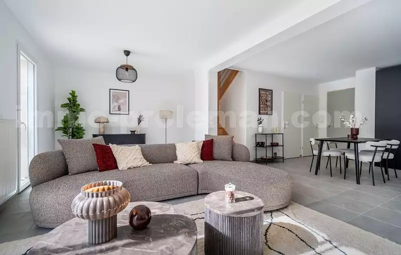 Située à Loisin, charmante commune réputée pour son cadre de vie paisible entre campagne et lac, cette belle maison individuelle T5 de 108 m² séduit par son confort et son emplacement privilégié. Vous profiterez d'un environnement résidentiel calme, à proximité de Douvaine, des accès routiers et de la frontière suisse.