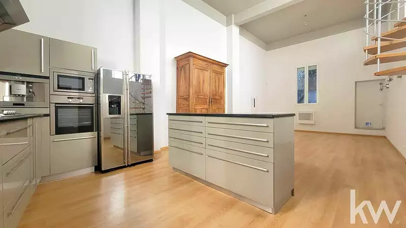 Il se distingue par ses vastes espaces ouverts et sa belle hauteur sous plafond, parfaits pour des aménagements personnalisés et des moments de convivialité qui vous permettent de combiner espace de vie confortable et espace de travail éventuel.