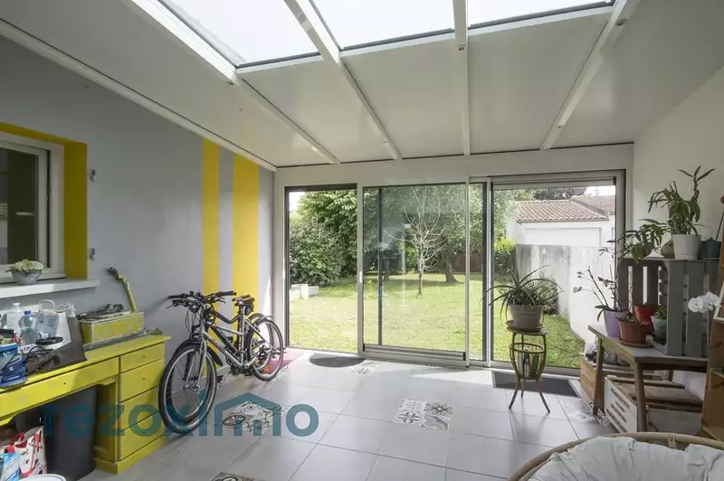 Le séjour salon, ainsi que la cuisine ouverte entièrement équipée offrent un espace de 45m² prolongé par une véranda de 16,20 m² chauffée et isolée ouvrant sur un jardin arboré exposé sud avec abris de jardin et puits.