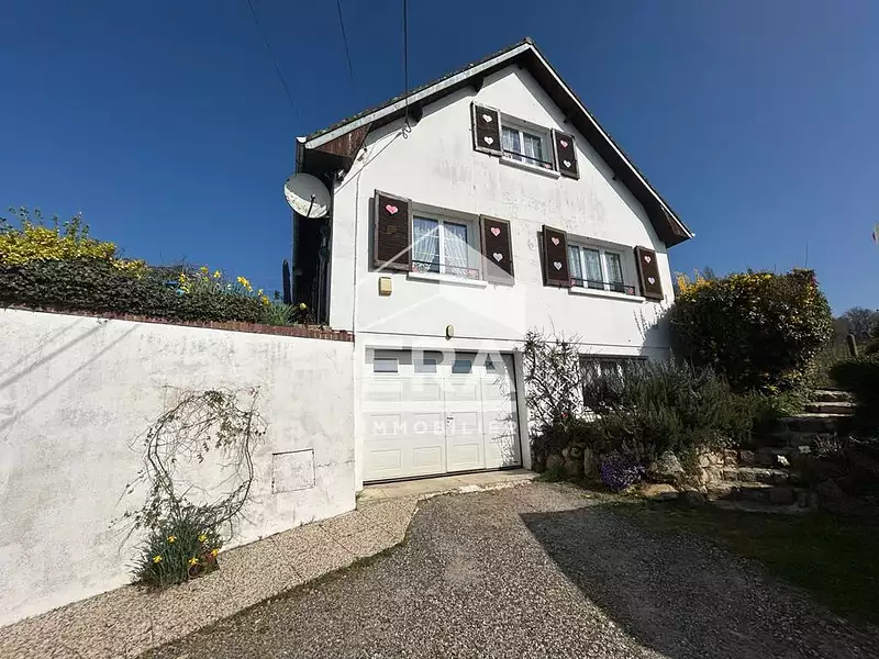 Maison habitable de plain pied exposée sud-sud ouest, sur sous-sol complet de 80 m2 (comprenant un garage permettant le stationnement de 2 véhicules, une grande buanderie et une chaufferie).
