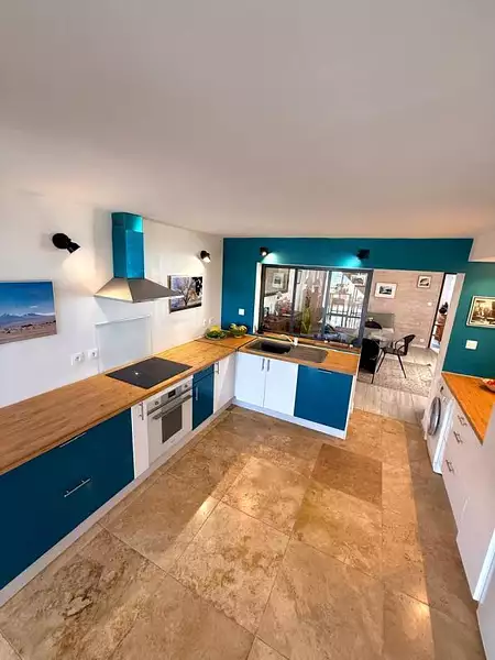 - 1 grande varangue d'environ 26m2 aménagée pour pouvoir profiter de l'extérieur en famille ou entre amis