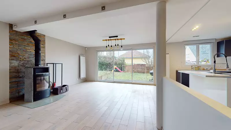 Dès votre arrivée, laissez vous séduire au rez-de-chaussée : d'une entrée fonctionnelle avec rangements, une pièce de vie chaleureuse agrémentée d'un poêle à bois, et une cuisine ouverte, parfaite pour vos moments en famille ou entre amis,. Vous aurez un accès direct au jardin et sa terrasse.