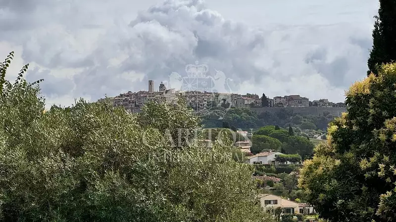 Villa située dans un quartier très résidentiel au calme et proche du village à pied, avec une vue incroyable sur le village de Saint Paul de Vence.
