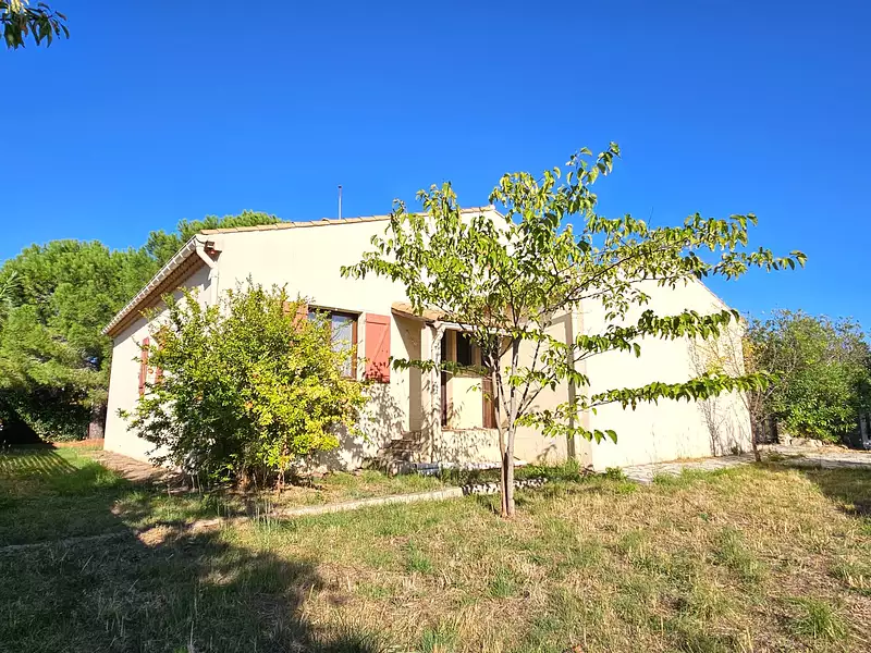 Villa de plain-pied de type 4 de 109 m² habitables environ en sus d'un garage de 25 m² sur un terrain piscinable de 645 m² au centre de Marseillan.