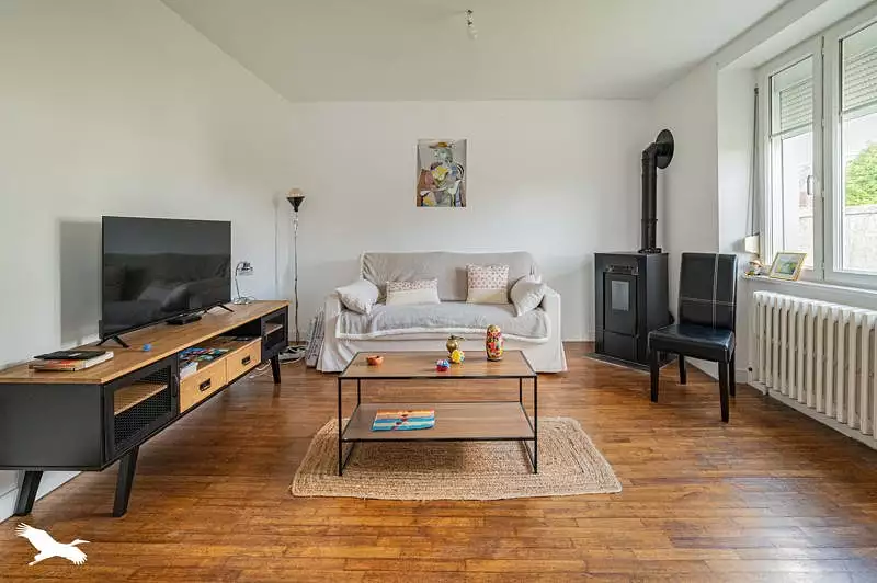 Maison située en impasse, entièrement rénovée et prête à vivre sans travaux. Elle offre une surface d’environ 110m², avec 4 chambres et un bureau. Un sous-sol complet avec garage vient compléter l’ensemble. La maison est équipée d’une pompe à chaleur et d’un poêle à granulés. Vous profiterez d’une vue dégagée sur les Proposition d'aménagement virtuel non contractuelle en dernière photo.