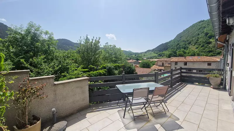 Située dans un environnement calme et verdoyant, cette charmante maison de village mitoyenne des deux côtés offre environ 109 m² de surface habitable, répartis sur plusieurs niveaux. Parfaitement rénovée, elle constitue un bien idéal pour une première acquisition ou une résidence secondaire au cœur de la nature. Dès l'entrée, une jolie cour d'environ 12 m² vous accueille, équipée d'un barbecue pour profiter des beaux jours, ainsi qu'un cabanon pratique pour le rangement. Le rez-de-chaussée propose un grand hall d'entrée chaleureux, agrémenté d'un poêle à pellets programmable manuellement. Une chambre confortable d'environ 12 M2 , une salle d'eau avec toilettes ainsi qu'une buanderie complètent ce niveau. À l'étage, vous découvrirez une spacieuse pièce de vie d'environ 46 m², baignée de lumière. Cet espace regroupe une cuisine ouverte, une salle à manger conviviale et un salon équipé d'un poêle à triple combustion auto-nettoyant, garantissant confort et performance énergétique. La pièce donne accès à une terrasse carreleée, d'environ 19 m2, très agréable avec une vue imprenable sur la nature environnante. Une mezzanine d'environ 18 m² surplombe l'espace de vie et offre de nombreuses possibilités d'aménagement, que ce soit en chambre d'appoint, bureau ou coin détente. Cette maison allie parfaitement charme, confort et fonctionnalité, dans un cadre paisible, proche de la nature. Aucune rénovation majeure n'est à prévoir, vous n'aurez qu'à poser vos valises. Un bien rare à découvrir sans tarder. SARL TIME AND STONE IMMOBILIER - RCS Carcassonne SIRET 853 226 033 00019 - CPI N° 11012019000042379 - CCI Carcassonne. TEL: 04 30 36 80 62 - Plus d'informations sur (réf. 11037298 -1401) Honoraires charge vendeur Prix hors frais notariés, d'enregistrement et de publicité foncière. Agent commercial indépendant - TROILO Florence - RSAC N° ADC 1101 2021 000 000 066 Les informations sur les risques auxquels ce bien est exposé sont disponibles sur le site Géorisques http://www.georisques.gouv.fr. Conformément à la loi et selon l'article L.561.5 du Code Monétaire et Financier, pour l'organisation de la visite, la présentation d'une PIECE D'IDENTITE vous sera OBLIGATOIREMENT DEMANDEE