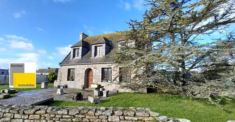 A vendre, à SANTEC, sur la côte du Finistère Nord, à moins de 500 mètres de la plage et du bourg avec tous ses commerces, cette construction des années 1960 bénéficie d'un très bel emplacement. Elle comprend au rez-de-chaussée : entrée, salon séjour avec cheminée insert, cuisine, w-c, salle de bains. A l'étage : 4 chambres. Le tout sur un terrain d'environ 855m². Prévoir travaux. (5.00 % honoraires TTC à la charge de l'acquéreur.)