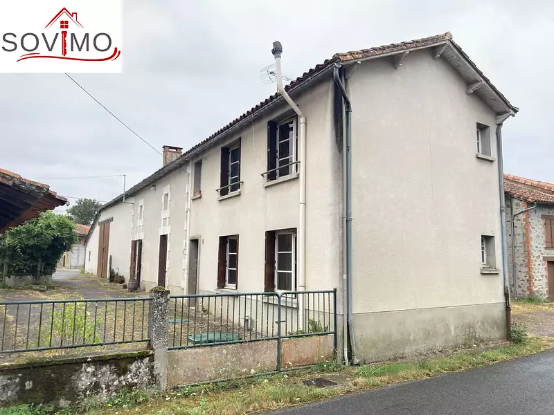 RÉF. 34654 : 60 500 euros HAI, Au calme dans un hameau sur la commune d'Abzac (16), proche de Confolens, du potentiel pour cette ancienne fermette mitoyenne, à rafraichir, à usage d'habitation, 110 m2 env. utilisables, composée au rez de chaussée : cuisine, séjour, couloir, 2 chambres, wc, à l'étage : palier, 2 chambres, salle de bain, wc, grenier aménageable de 40 m2. Chauf. fuel, fosse toutes eaux de 2022. Une grange attenante de 145 m2, une grange indépendante de 120 m2, débarras, hangar et petit toit, puits avec motopompe, cour et terrain attenant, le tout sur 742 m2 + diverses parcelles séparée de différentes natures pour 4ha 33a 41ca.