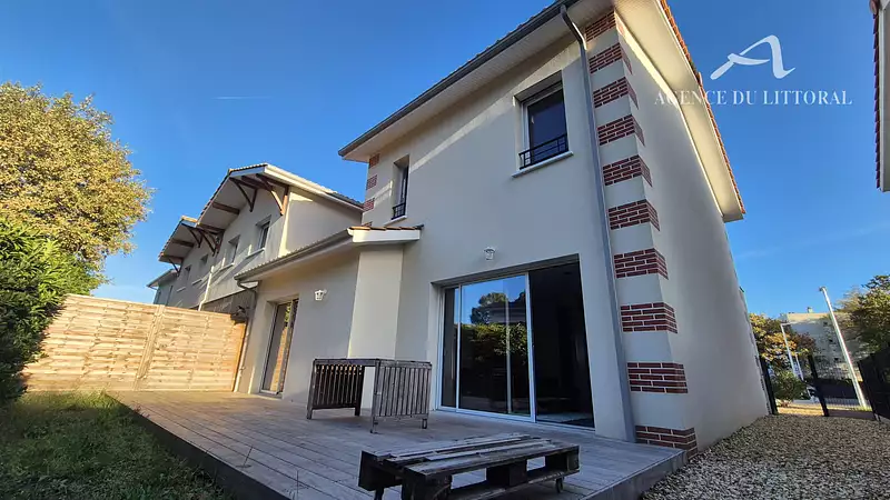 L'agence du Littoral vous propose de découvrir cette maison contemporaine de 2023 située dans une impasse au cœur d'Andernos-les-Bains proche de la plage et piste cyclable. Cette maison mitoyenne d'un côté par le garage offre une surface habitable de 110 m2 sur un terrain de 237 m2. Au rez-de-chaussée, vous trouverez une entrée avec WC, une vaste pièce à vivre lumineuse avec cuisine équipée et aménagée, donnant accès à un cellier et à une terrasse en bois exotique exposée ouest. La suite parentale au rez-de-chaussée ouvrant sur la terrasse dispose d'une salle d'eau avec WC. À l'étage, un palier dessert trois chambres, une salle de bain avec douche et baignoire, un WC séparé, ainsi qu'un second cellier. Le garage attenant d'environ 15 m2 complète ce bien. La maison est équipée de la climatisation dans la pièce à vivre et à l'étage.Idéale pour une famille à la recherche de confort et de modernité, dans un environnement calme et sécurisé.