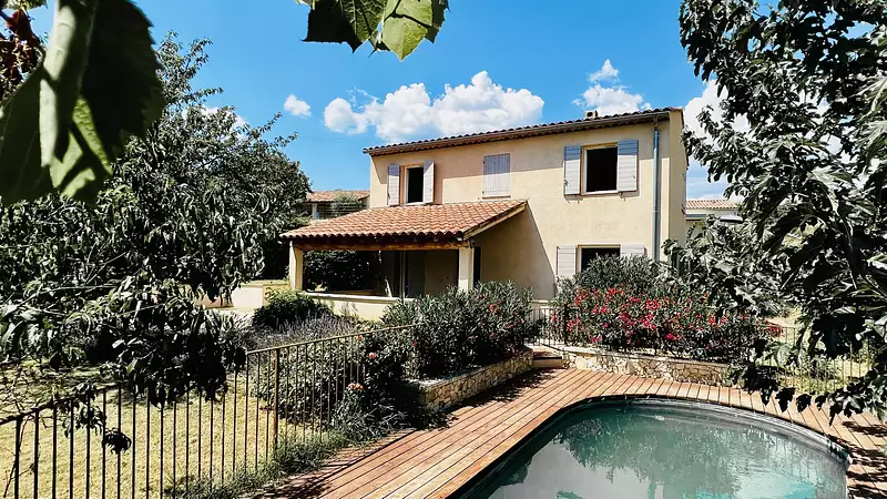 Maison bâtie en 2014, d'une surface habitable de 110 m2, situé en périphérie d'Apt, à seulement 5 minutes du centre-ville, dans un quartier résidentiel calme offrant une vue magnifique. Cette belle demeure se compose d'un séjour avec cuisine ouverte, équipée d'une superficie totale de 41 m2, et de 4 chambres, dont une suite parentale avec terrasse privative au rez-de-chaussée. Elle dispose également d'une grande terrasse couverte de 18 m2, orientée sud, vous permettant de vivre à l'extérieur toute l'année et de profiter de la vue imprenable.